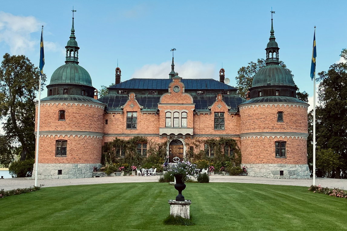 Vi har valt att gifta oss på Rockelstad Slott, ett nationalromantiskt renässansslott vid sjön Båven i Sörmland. Platsen är full av historia — här har människor bott och verkat sedan medeltiden, och den ursprungliga herrgårdsbyggnaden har anor tillbaka till 1600-talet.